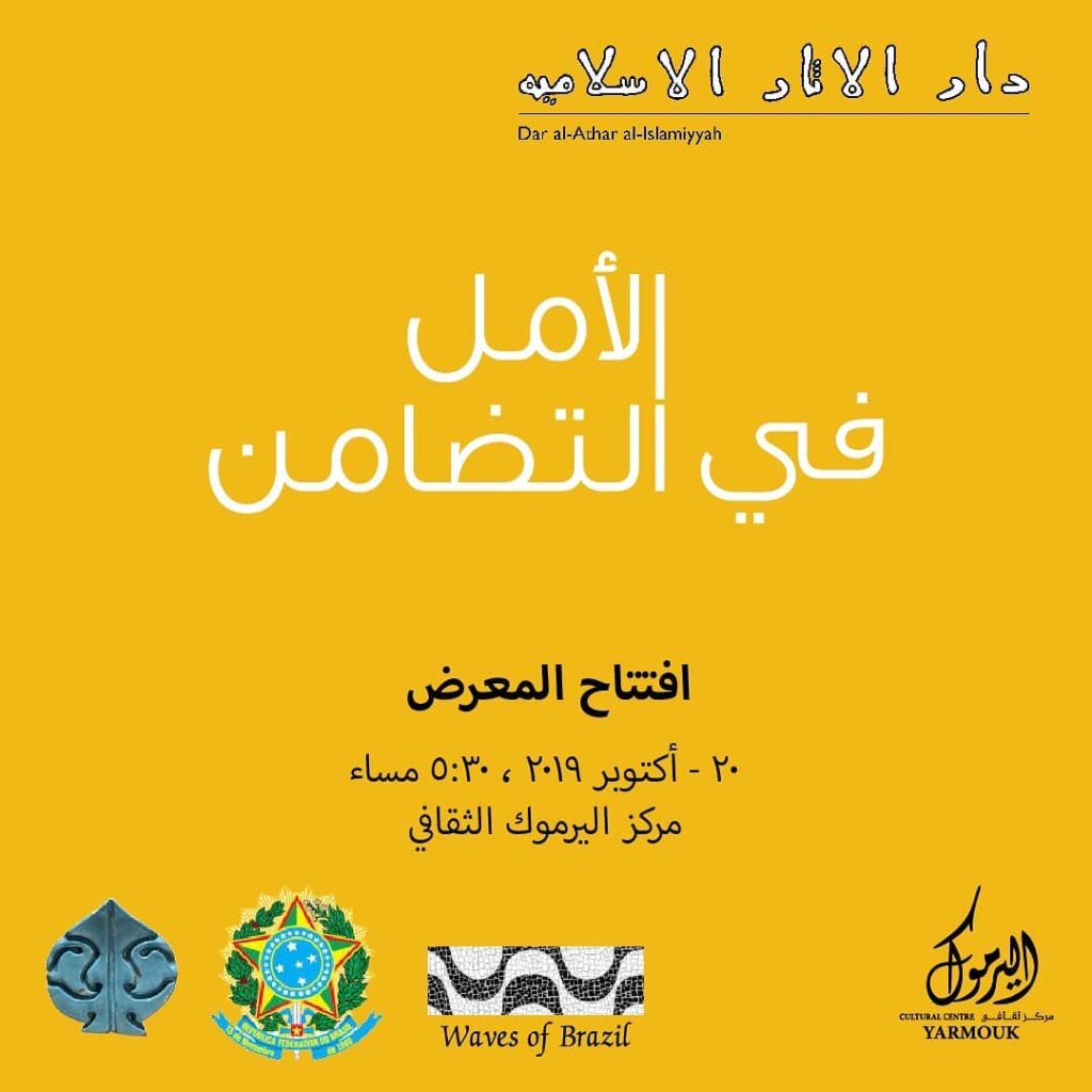 تم افتتاح معرض ” الأمل في التضامن” يوم الأحد الموافق ٢٠ اكتوبر 2019 في مركز اليرموك الثقافي، تحت رعاية السفير البرازيلي في دولة الكويت السيد نورتون ميلو رابيستا و سفيرة دولة الكويت السيدة ريم الخالد، كبادرة للتضامن تجاه ضحايا العنف و الإرهاب في الشرق الأوسط، قامت حكومة البرازيل بمنح مأوى لأكثر من ٩٠٠٠ شخص كانو قد تأثروا بالأزمة المستمرة في سوريا.