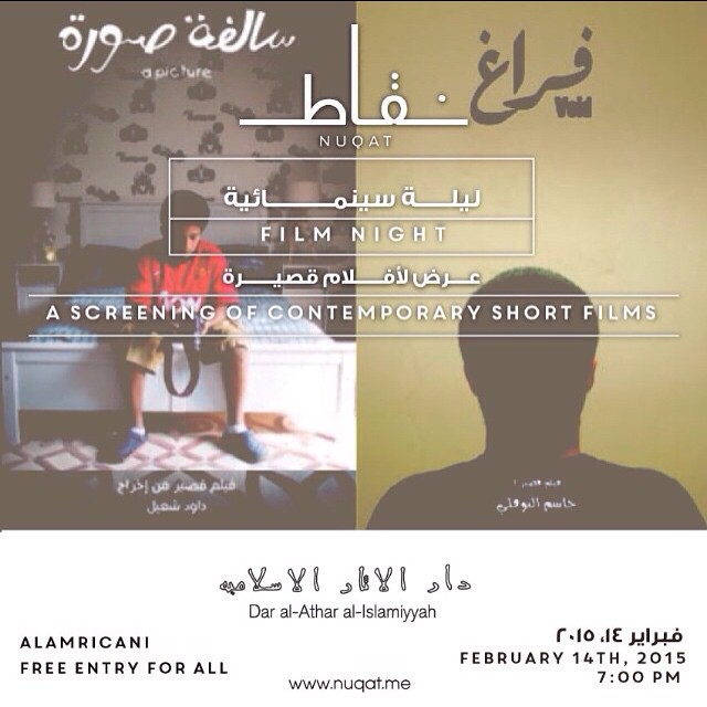 A screening of contemporary short films presented by Nuqat, at the Amricani Cultural Centre.
