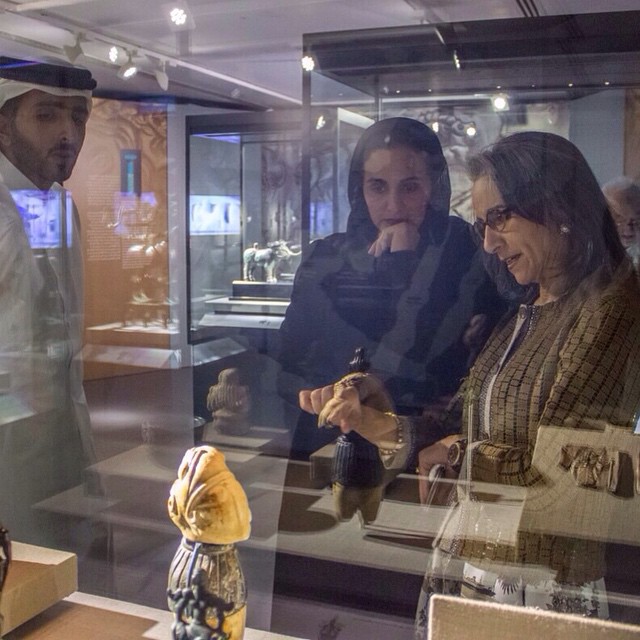 Today Dar al-Athar al-Islamiyyah’ Amricani Cultural Centre was visited by two distinguished guests from the State of Qatar: Sheikha Al-Mayassa bint Hamad bin Khalifa Al-Thani and HH Sheikh Jassim bin Abdulaziz Al Thani. They were received by DAI’s Director General Sheikha Hussah Sabah Al-Salem and accompanied by the Director of Public Relations Osama al-Balhan. The guests walked thru the corridors of the historical American Mission Hospital, the first hospital in Kuwait, and toured the latest exhibitions. Both HH Sheikh Jassim bin Abdulaziz Al Thani and his wife Sheikha Al-Mayassa bint Hamad bin Khalifa Al-Thani share a passion for art, history and culture, and have their own distinctive collection of modern and contemporary art. In fact, Sheikha al-Mayassa is the Chairperson of Qatar Museums.