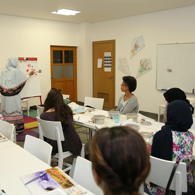 Friends of DAI learn how to create flower shape designs during Tasneem Fakhri’s ‘One Stroke Fabric Painting’ Workshop at the Amricani Cultural Centre.
