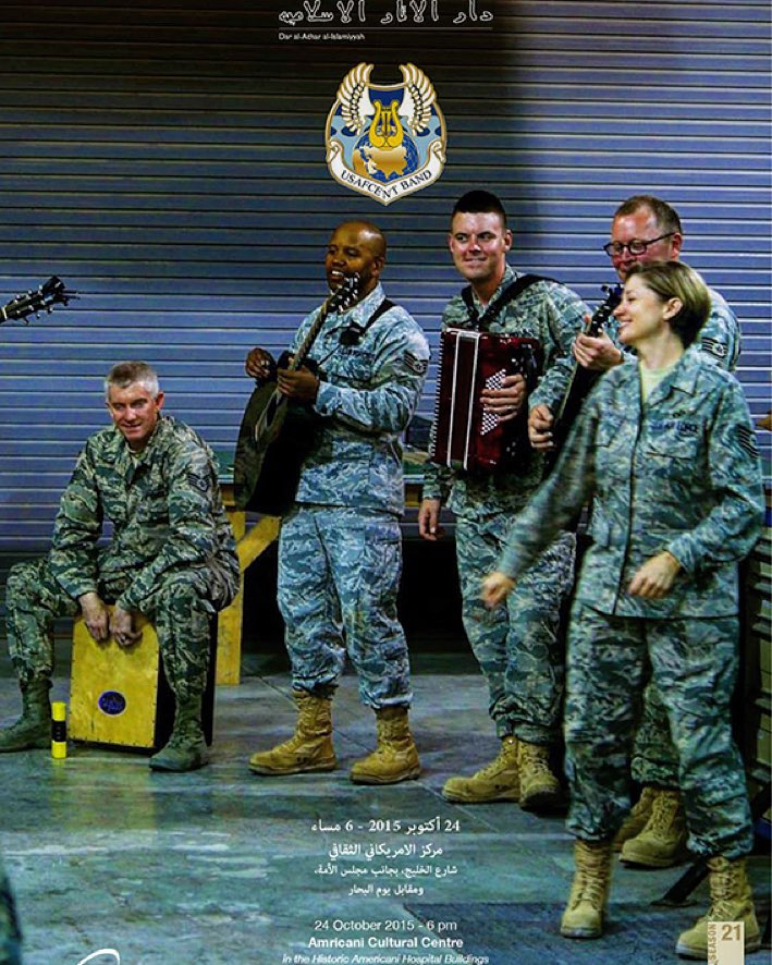 On the evening of October 24, 2015, the U.S. Air Force command center deployed in Qatar performed as the band Full Spectrum at the Amricani Cultural Centre. The songs they performed were popular music hits, including Michael Jackson, Flogging Molly, Omi, etc. The Ambassador of the U.S.A. to Kuwait His Excellency Douglas Silliman introduced the band to the audience.