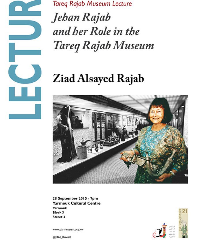 Jehan Rajab was heavily involved in the museum established by her husband, Tareq Rajab and was the driving force behind the accumulation and curating of various museum collections. She conducted much research into these various collections producing, along the way, published books and articles. For the purpose of her research, Jehan travelled to many countries and met and spent time with people involved in traditional crafts. She researched and wrote on topics as broad as “Costumes of the Arab World” to more specific topics such as Ottoman Towels. This talk outlines her contributions by focusing on various items and artefacts from the Tareq Rajab Museum collections of textiles and jewellery.