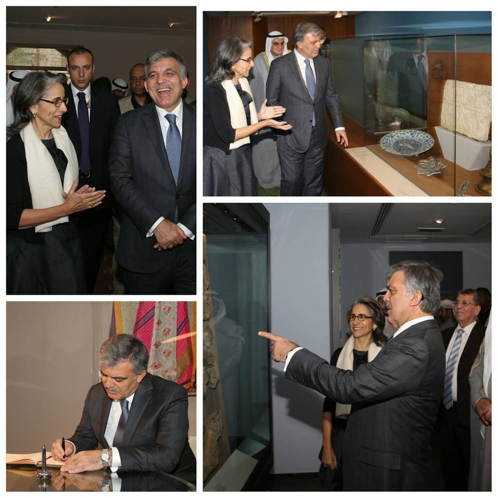 The former President of Turkey Abdullah Gul paid a visit to the Amricani Cultural Centre while escorted by the Diwan Amiri. Her Excellency Sheikha Hussah Sabah al-Salem al-Sabah provided a tour of the current exhibition “Splendors of the Ancient East”