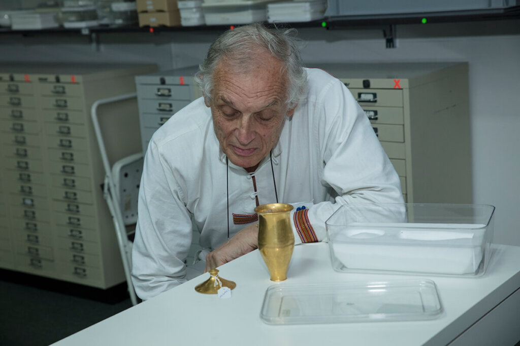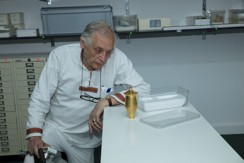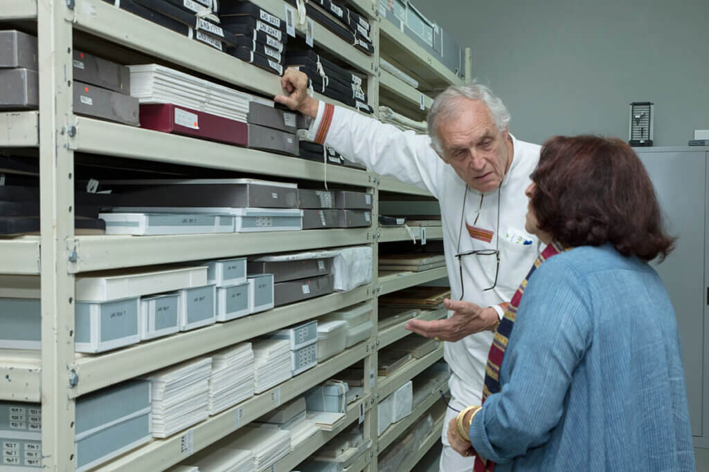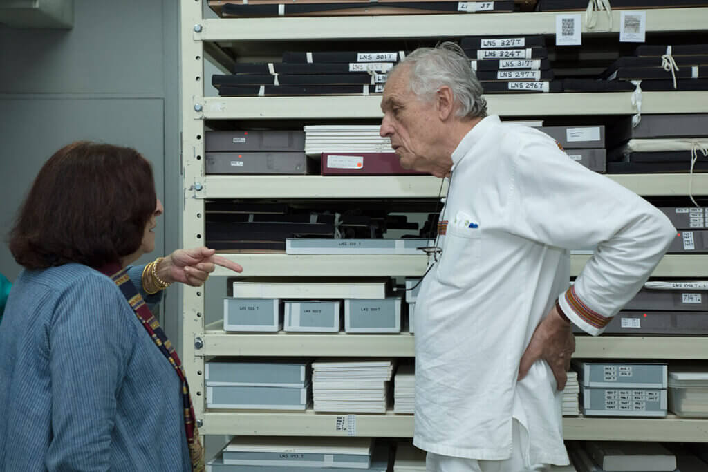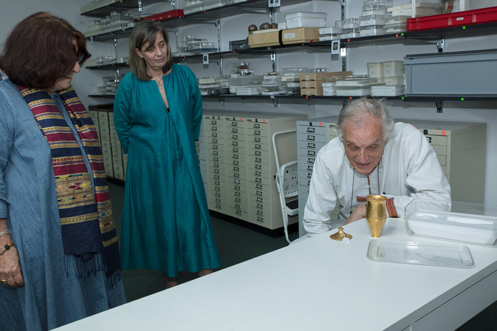 Maria Mertzani, Lead Conservator UNESCO Project Office, Kuwait visiting the stores of The al-Sabah Collection with Salam Kaoukji, curator of the Collection.