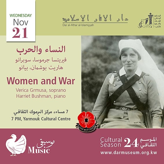 This recital marks the centenary of the end of World War One. It tells the stories of war through the music composed across the globe, but also across different times in history. While it starts with ‘War to End All Wars’, the recital unfolds threading the music of World War Two and more recent history. It shifts the focus from the predominantly masculine narratives of war to the lens of female experiences, with songs of love and losses that highlight war’s universal themes. Recital also casts spotlight on several remarkable women performers who used song as a platform to command public voice, thus fittingly marking another centenary – that of the Women’s Suffrage movement in UK.