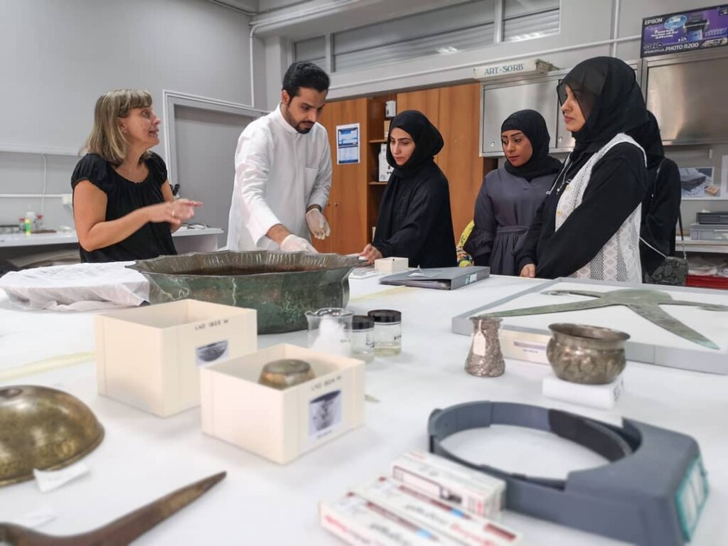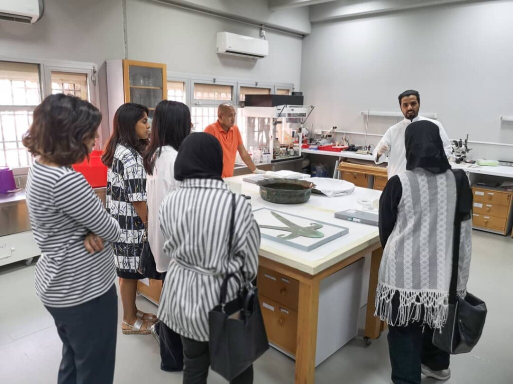 Teams from the Kuwait National Museum and the Abdullah al-Salem Cultural Centre were given a tour of the conservation and storage facilities and an introduction to the collection management system of The al-Sabah Collection at the Yarmouk Cultural Centre.