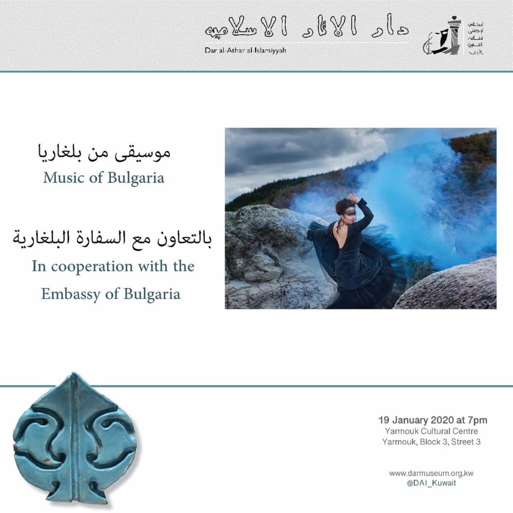 A special Music Night at Dar al-Athar al-Islamiyyah in cooperation with the embassy of Bulgaria, entitled “Two Sopranos Sing Classics and Jazz” performed by a group of talented musicians, such as Preslav Petkov, Anna Karadimitrova, Boris Tasley, Mihail Yossifov, Militsa Gladnishka, and Vasil Spassov.