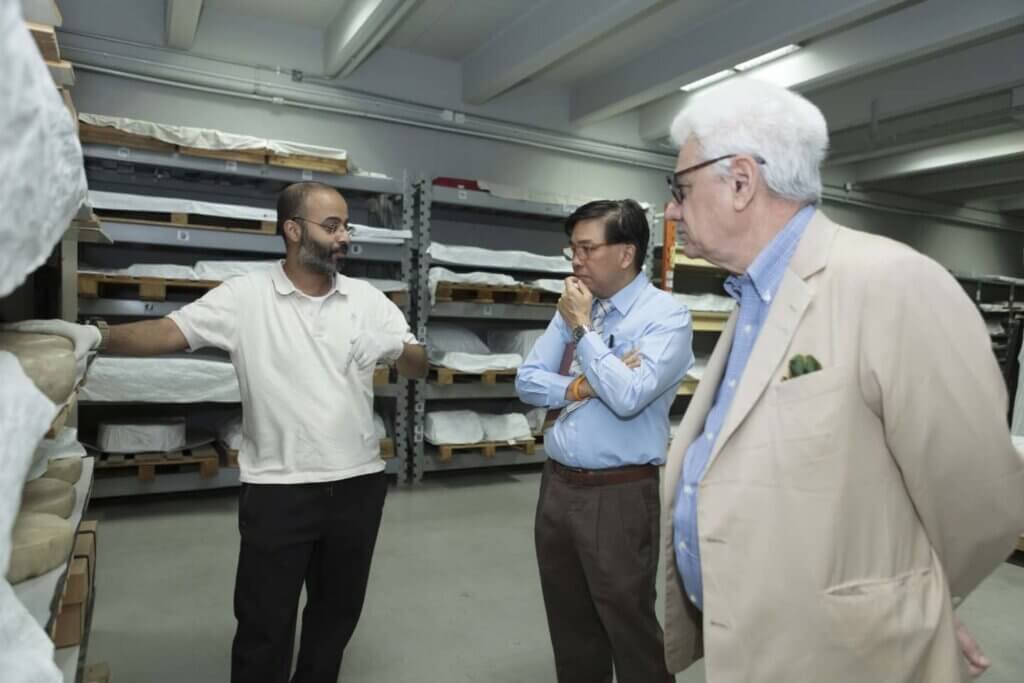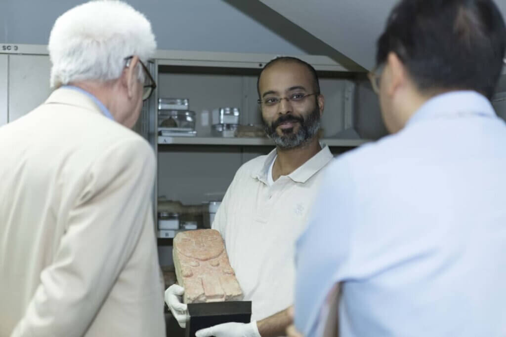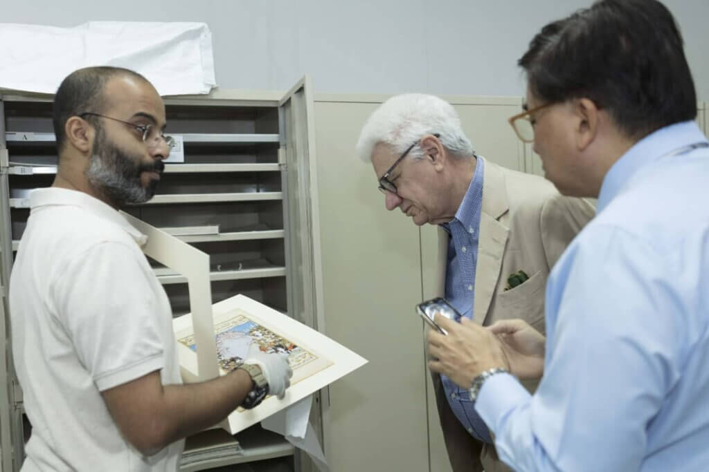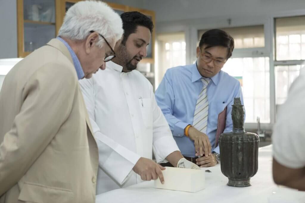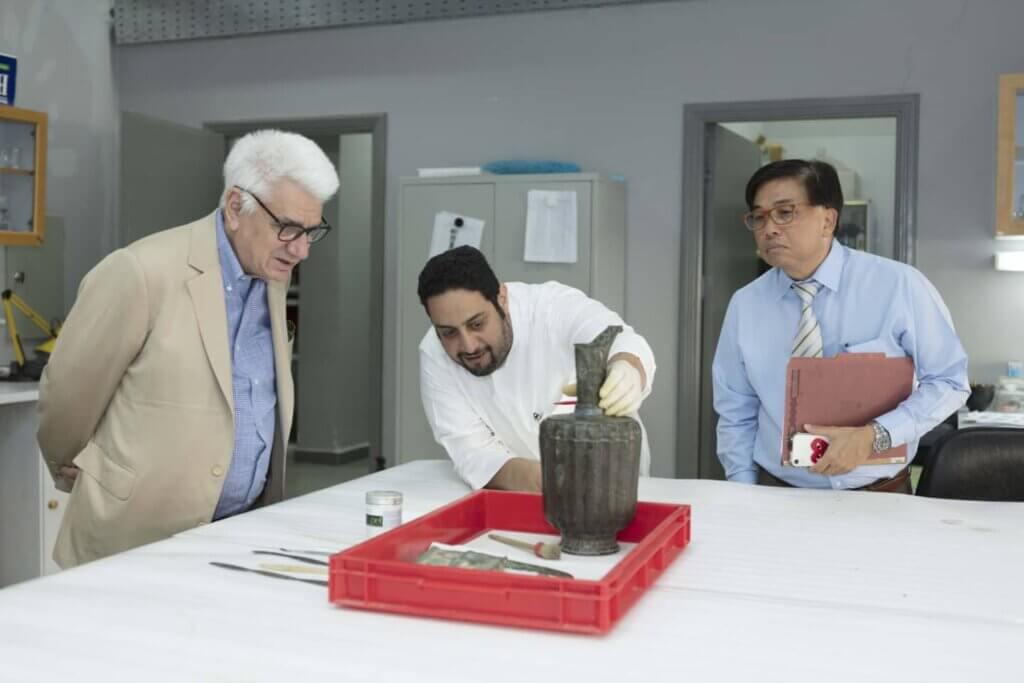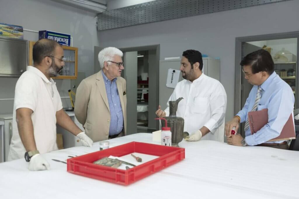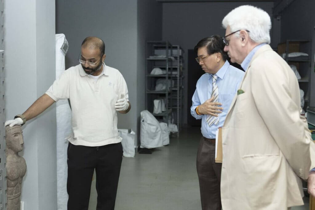 H. E. the Ambassador of Thailand, Mr Rooge Thammongkol and Mr David Sulzberger given a tour of The al-Sabah Collection by Mutlaq al-Juraid, Assistant Curator of The al-Sabah Collection, and of the conservation department by Abdulaziz al-Duweesh.