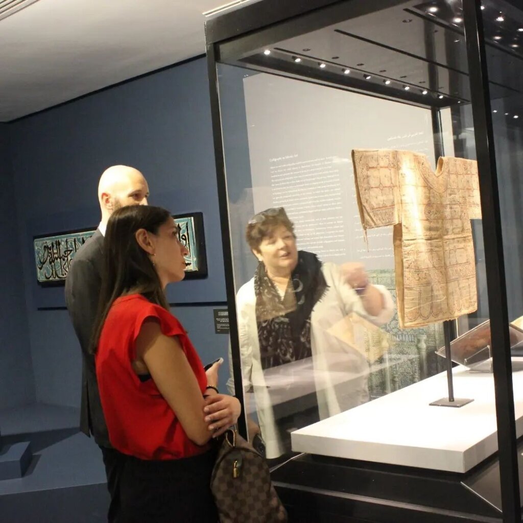 US Chargé d’ Affaires Jim Holtsnider and members of his team traded in the American Embassy for the Amricani Cultural Centre. The group toured both the “al-Fann” and “Mirrored Nature” exhibitions and the multi-media presentation “Story of Amricani”. The visit gave the acting ambassador the chance to tour the space and discover more about the early relationship between Kuwait and the United States.