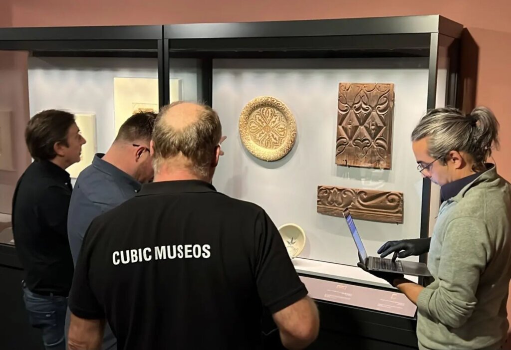 A group of mount- making specialists, headed by Mr. Colin Morris, are visiting Dar al-Athar to inspect the objects in al-Fann exhibition at Amricani Cultural Centre. These objects will be loaned to “The First House,” an exhibition on the history of the Holy Kabbah, organised by the Biennale of Dar’ia, to be held in Jeddah in late January 2023.