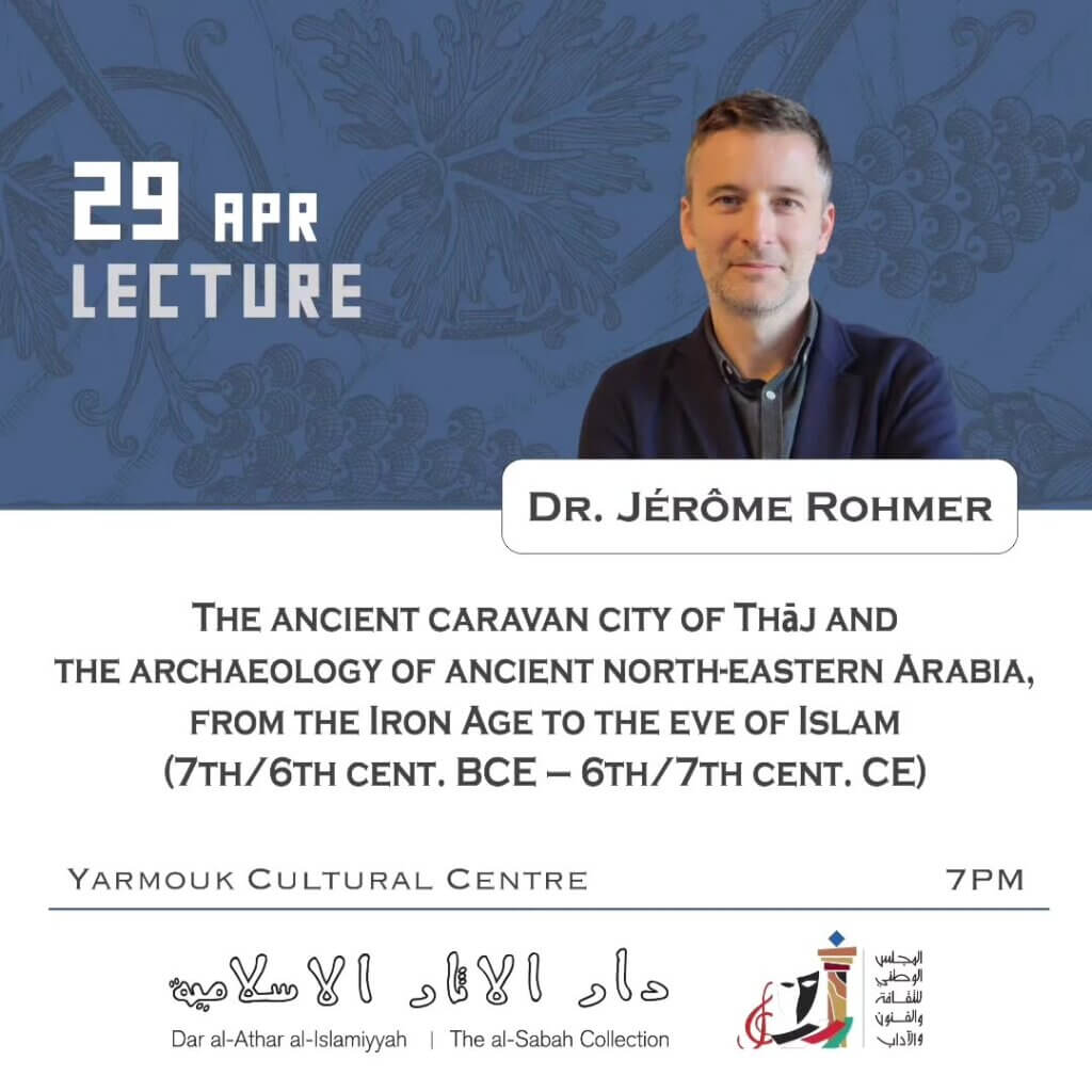 Located in the Eastern Province of Saudi Arabia, 90 km off the coast of the Arabian Gulf and c. 180 km south of the Saudi- Kuwaiti border, Thaj is by far the largest known pre-Islamic settlement in Eastern Arabia. Between 2016 and 2023, five large-scale excavation seasons were carried out at Thaj, co-led by the French CNRS and the Saudi Heritage Commission. They have shed critical new light on the site’s evolution through time, from its emergence in the Late Iron Age, through its heyday in the ‘Hellenistic’ period, to its gradual decline in Late Antiquity. This lecture will present an overview of these results and put them into perspective within the wider history of East Arabia in the ‘Late Pre-Islamic’ Period.