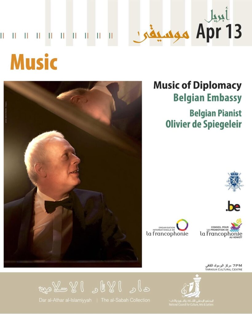 Tonight’s special music performance by the pianist Olivier de Spiegeleir at the Yarmouk Cultural Centre. This music night was in cooperation with the Embassy of Belgium in the State of Kuwait.