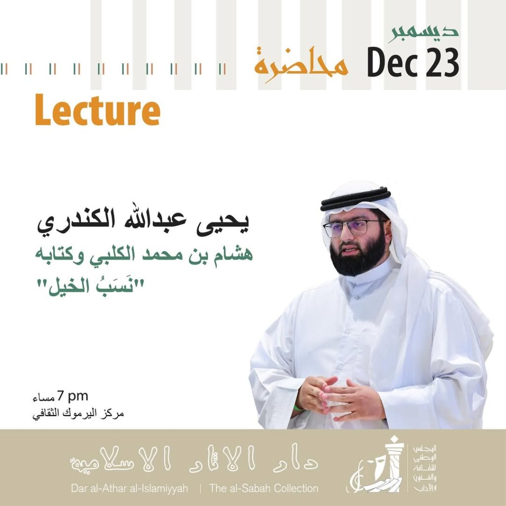 تتناول المحاضرة مناقشة كتاب هشام بن محمد الكلبي عن نَسبُ الخيل والذي يُعتبر أقدم الكتب المُختصَّة بالخيل، وتُسلط المحاضرة الضوء على عدة محاور، أولها تحرير الخلاف في نِسبةِ الكتاب إلى هشام أو أبيه محمد، من نصوص السَّمَّاعَات ونُقُول المؤرخين وكتبه الأخرى عن الخيل، أما المحور الثاني فيناقش نَسَبُ الخيل وأخبارها في فترة ما قبل ظهور الإسلام وبعده: نسخته الخطية الأم “نسخة الاسكوريال بخط الجواليقي”، والأصل الذي نَقلَ عنه الجواليقي وتحديد زمنه، ورحلتها – رحلة النسخة – من مكتبات بغداد إلى مكتبة المعظم الأيوبي ثم الزيدانية بالمغرب ثم الاسكوريال. سترتكز المحاضرة كذلك على روايات الكُتَّاب والفَرْق بينها وبين رواية الجواليقي عبر المقارنة بـ نُقُولِ العلماء خاصة نصوص المعاجم اللغوية، وتحديد القدر الضائع من الكِتابِ واستخراجه من المعاجم، وجهود العلماء في التعليق على الكِتاب، ابن التلاميد الشنقيطي، وسيد المرصفي، وأحمد زكي باشا، وأخيرًا أخبار الخيل التي رُوِيَتْ عن ابن الكلبي خارج كتابه، مثل: قصة النساء العشرة اللواتي وصفن جياد آبائهن