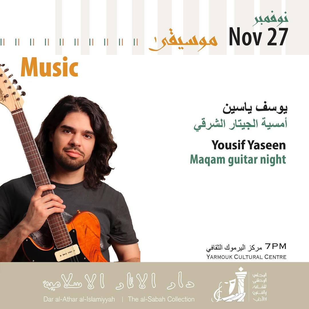 Music night under the title, “Maqam Guitar Night” performed by, Yousif Yaseen at the Yarmouk Cultural Centre.