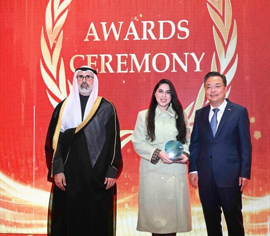 The award was received on behalf of Dar al-Athar al-Islamiyyah by Aljazi Alsenafi – Media officer at (DAI)