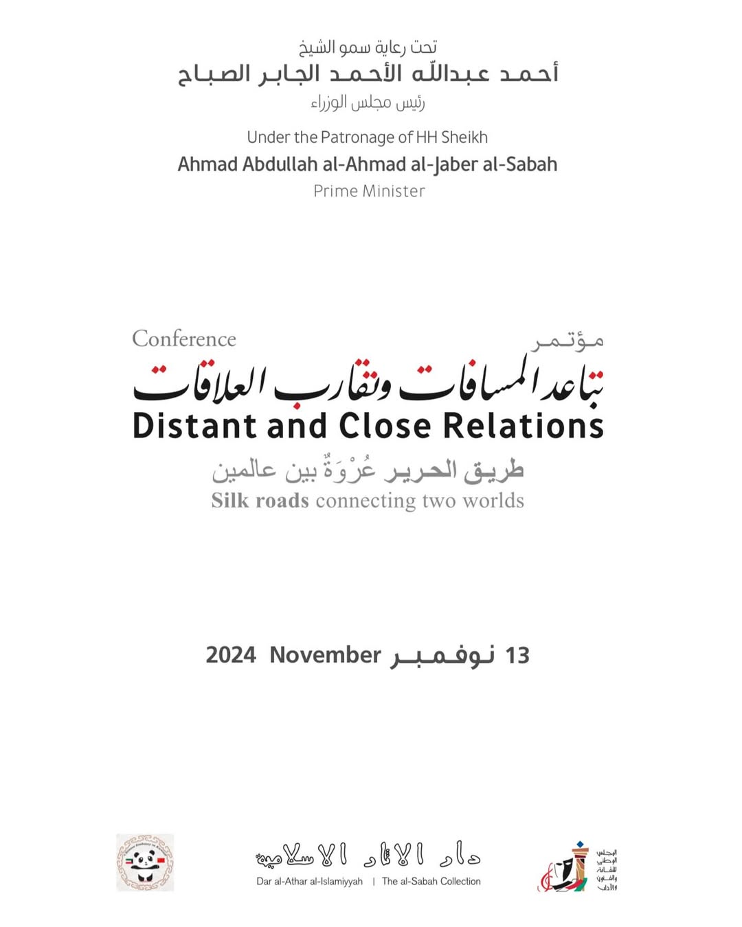Jaber Al-Sabah, and in the presence of the Minister of Information and Culture, Mr. Abdulrahman B. al-Mutairi, representing His Highness, the conference titled “Distant and Close Relations: Silk Roads connecting two worlds” was held at the Yarmouk Cultural Centre.