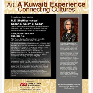 Director General 2016-2017 Sheikha Hussah Sabah al-Salem al-Sabah, Director-General of Dar al-Athar al-Islamiyyah, Heads to the USA Where She Will be Giving a Talk on ( Art: Kuwaiti Experience in connecting Cultures ) at Arizona State University Read More » 2016-11-04