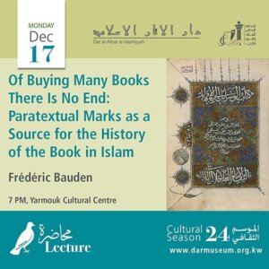 Lectures CS24 Of Buying Many Books There Is No End: Paratextual Marks as a Source for the History of the Book in Islam Read More » 2018-12-17