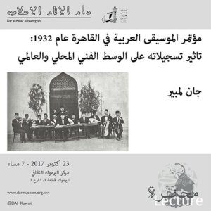 Lectures CS23 Around the Congress of Arabic Music in Cairo, 1932: The local and global impact of the sound recordings Read More » 2017-10-23