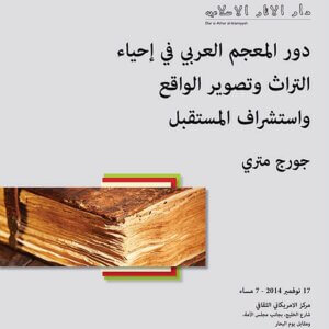 Lectures CS20 Dr. George Mitri Abdulmaseeh. “The Role of Arabic Lexicon in the Revival of Heritage: The Reflection of the Present and the Perception of the Future” Read More » 2014-11-17
